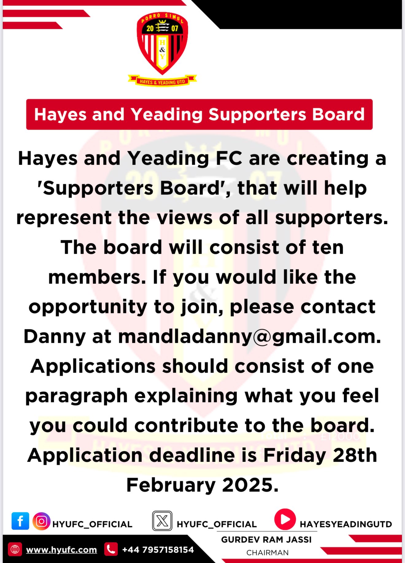 Supporters' Board: A Call For Applicants
